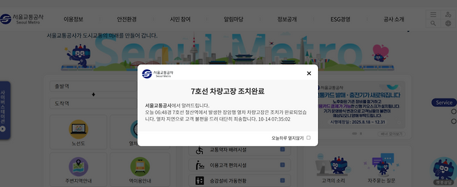 오전 7시 35분 현재 공사는 "철산역에서 발생한 장암행 열차 차량고장은 조치가 완료됐다"며 "열차 지연으로 고객 불편을 드려 대단히 죄송하다"라고 밝혔습니다.