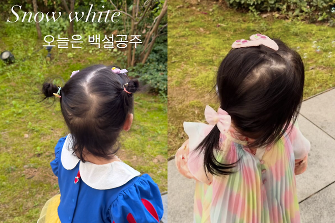 공개된 사진 속에는 백설공주 의상을 입고 양갈래 머리를 한 이민정 딸의 모습이 담겼다. 얼굴은 보이지 않지만 뒷모습만으로 귀여움을 자아냈다.