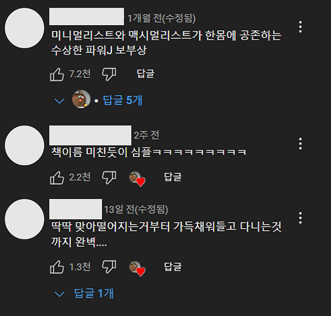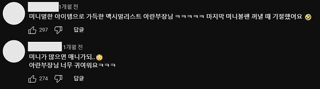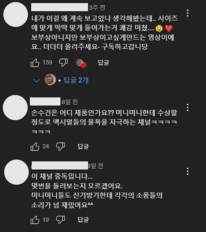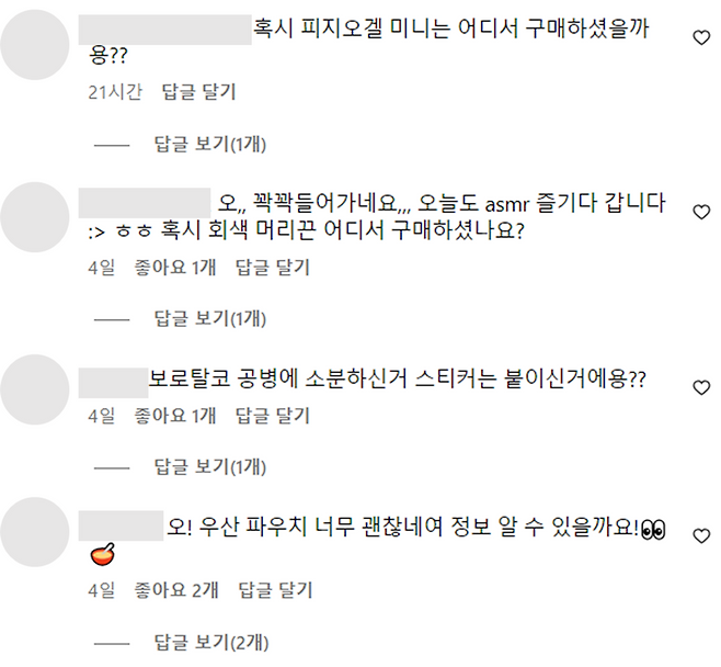 매 영상에 아이템 질문 댓글도 많이 올라오고 있다.