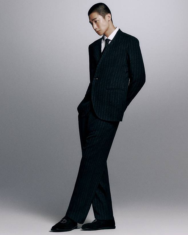 스트라이프 패턴을 더해준 수트 셋업.