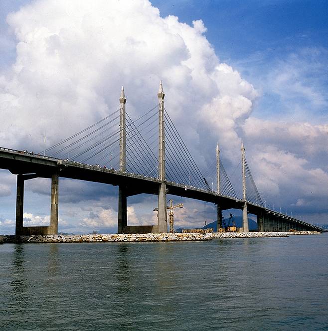 세상에 불가능한 일은 없다며 늘 새로운 시도를 해내던 한국 건설사들의 집념은 세계 곳곳에 남아 있다. 대표적인 사례가 말레이시아의 페낭대교다. 이 교량은 바다 위를 가로질러 육지와 섬을 연결해야 하는 초대형 프로젝트였지만, 당시만 해도 40개국 이상의 글로벌 건설사가 ‘도저히 완공 불가’ 기술 난제로 손사래를 쳤다. 특히 느긋한 현지 인부들의 작업 습관 때문에 공정은 계속 늦춰졌고, 공사비는 치솟았다. 이때 현대건설의 창업자 정주영 회장은 말도 안 되는 발상을 제안했다. “다리를 한국에서 조립해 바지선으로 운반한 뒤 현지에 통째로 설치하자.” 전문가들은 모두 미쳤다고 했지만, 결국 이 기상천외한 방식이 현실이 되었고, 페낭대교는 예정보다 한 달이나 빠르게 완공됐다. 세계가 포기한 다리를 한국이 만들어낸 순간이었다.