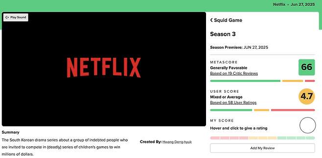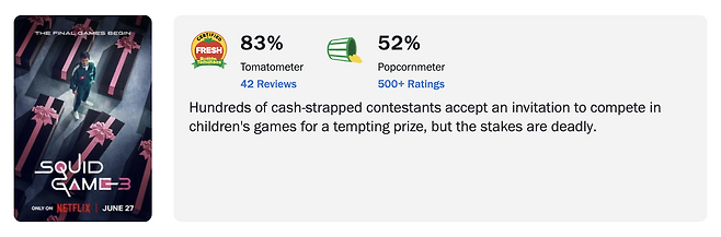 <오징어 게임> 시즌3는 압도적인 영상미와 여전한 몰입감으로 시리즈의 정체성을 유지했지만, 반복과 피로, 정치적 논란이라는 숙제를 남겼다. 한편으로는 시리즈의 정서를 감정의 끝단까지 밀어붙이며 ‘마지막 이야기’로서 설득력 있는 종결을 만들어냈다는 평가도 존재한다.
