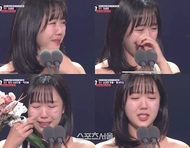 '런닝맨'에서 함께 출연 중인 강훈과 함께 수상자로 무대에 오른 지예은은 "제가 이 자리에 와 있는게 정말 감사한 일이고 감동적인 일"이라며 말을 시작하자마자 눈물을 쏟기 시작했다.