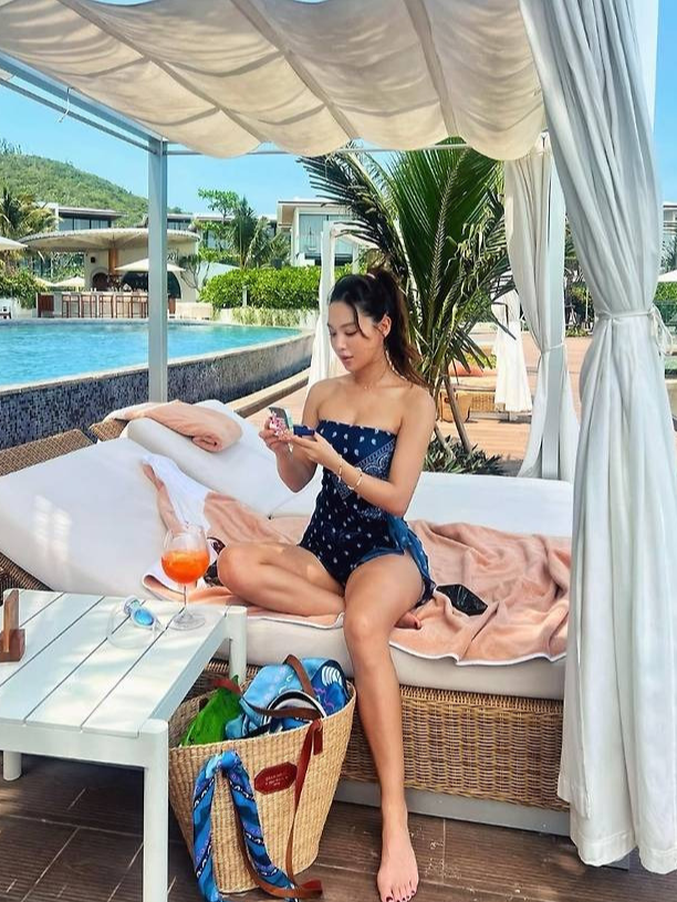 내추럴한 헤어스타일과 비치백까지 더해진 이 룩은 과한 노출 없이도 완벽한 휴양지 무드를 연출했습니다.