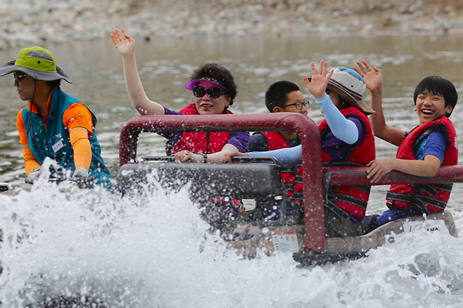 해담마을에는 그 어느 곳에서도 즐기기 어려운 체험들이 많이 준비되어 있는데, 특히 계곡을 가로질러 숲을 마구 휘젓고 다니는 ‘수륙양용차’가 가장 인기가 많은데요. 강원도 양양 여행에서 수륙양용차만큼의 스릴감이 있는 체험은 거의 없을 정도로 그 위상이 대단합니다. 여름의 스트레스를 한 번에 날려보세요.