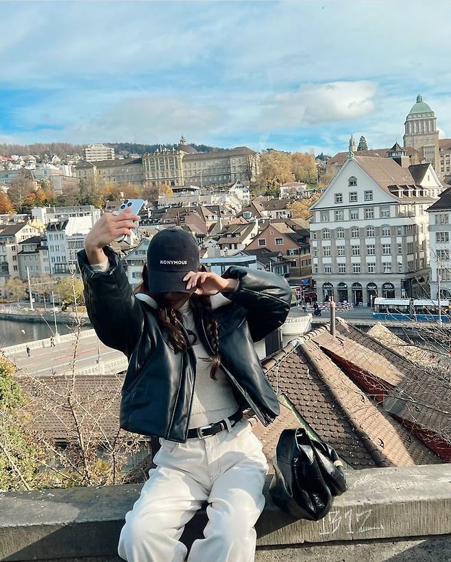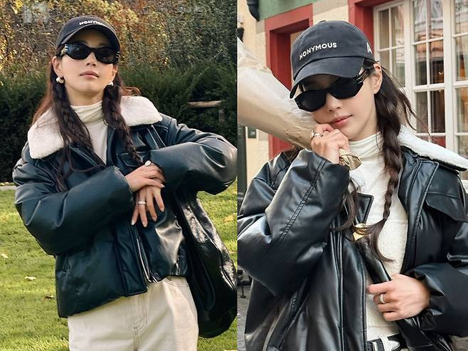 여기에 기은세는 스포티한 화이트 스니커즈와 블랙 볼캡, 선글라스를 매치해 활동적이면서도 힙한 무드를 완성했습니다.