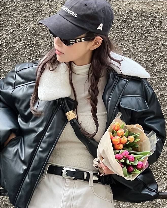 여기에 기은세는 스포티한 화이트 스니커즈와 블랙 볼캡, 선글라스를 매치해 활동적이면서도 힙한 무드를 완성했습니다.