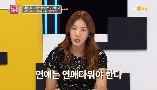 한혜진 또한 "연애는 연애다워야 한다. 연애는 실제적인 거다. 만나서 손잡고, 얼굴 보고 밥도 먹고, 같이 여행도 가고 이런 게 연애지. '나 이해해 줘' 백날 이해만 바라는 게 무슨 연애냐. 얼굴도 못 보고, 연애 같지도 않은 연애 뭐하려고 계속하냐"라고 쓴소리를 했다.