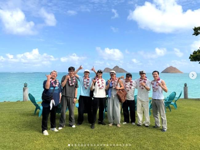 뷔x박서준x최우식 다 모였다..'우가팸' 하와이 휴가 사진 대방출