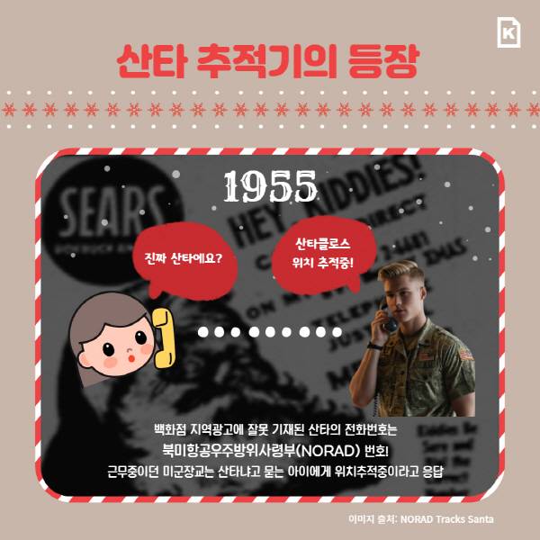 한 아이가 "정말 산타클로스예요"라고 묻자, 당시 근무 중이던 한 미군 장교는 "산타 위치 추적 중, 산타의 위치를 보고하라"고 팀에 지시했고 이것이 산타 추적기의 시작이 됐다.