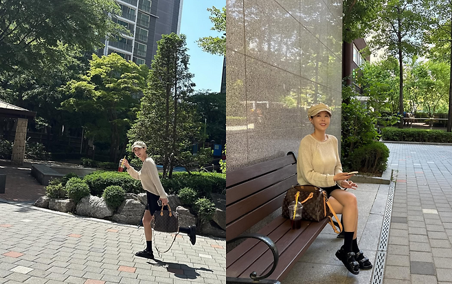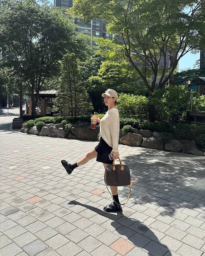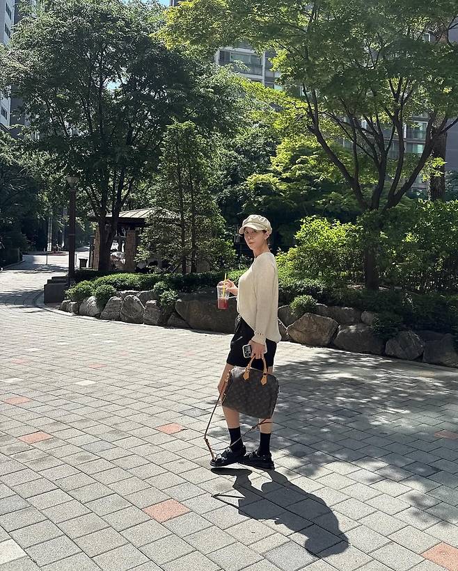 여기에 명품 백과 운동화로 스타일 포인트를 더해 40대라고는 믿기지 않는 동안 비주얼을 자랑했다.