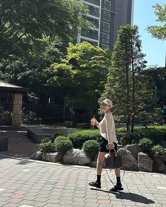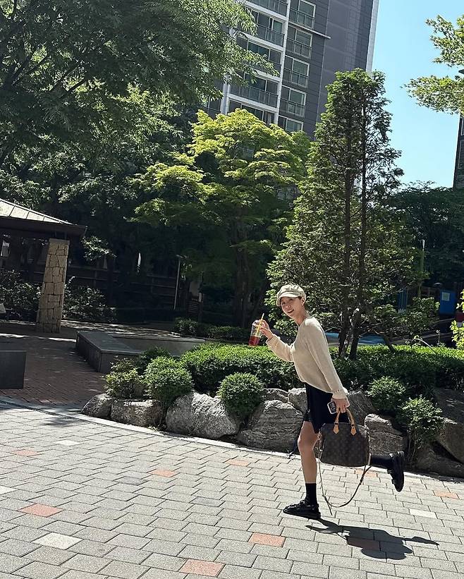 사진 속 그는 아이보리 니트와 블랙 반바지, 그리고 캐주얼한 버킷햇을 매치한 심플한 데일리룩을 완성, 도심 속 공원을 여유롭게 거니는 모습이다.