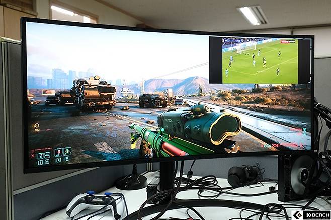 그 중에서도 울트라와이드 모니터라면 활용도가 높은 PIP와 PBP 기능을 비트엠 Newsync X34WQ144 나노 IPS 커브드 HDR400에서 지원하는데 이 기능을 사용하면 PC 뿐만 아니라 IPTV 셋탑이나 OTT 플레이어를 추가로 연결해 게임을 보며 원하는 영상을 동시에 시청할 수 있다.