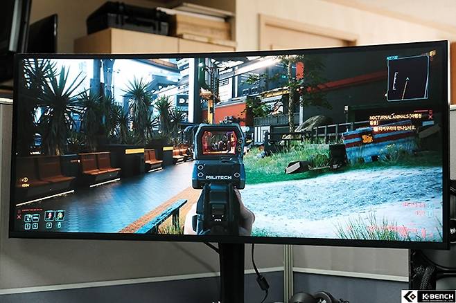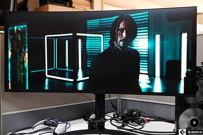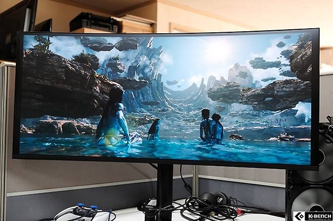 21:9 울트라와이드 비율과 커브드는 대화면 모니터에 적합한 조합이다. 20인치대의 작은 화면에서 커브드를 적용해 봤자 몰입감을 높인다는 본래 목적 보다 이질감만 커지는 것이 현실이라서 게이머들도 이런 조합을 꺼려해 왔다.