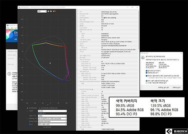 비트엠 Newsync X34WQ144 나노 IPS 커브드 HDR400는 나노 IPS의 이런 장점들을 제대로 경험할 수 있는 제품이다. 스펙상 표기된 DCI-P3 대비 98%라는 색재현율은 실측 기준 93.4%로 확인되었고 전체 크기에서 스펙상의 98% 보다 큰 98.8%로 측정됐다.