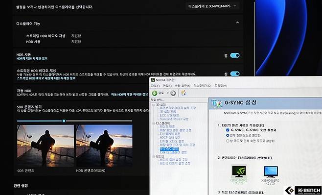 HDR 모드로 전환하면 발생하는 뿌연 화면도 없었고 프리싱크와 HDR 모드를 동시에 키고 사용하는 것도 가능했다.