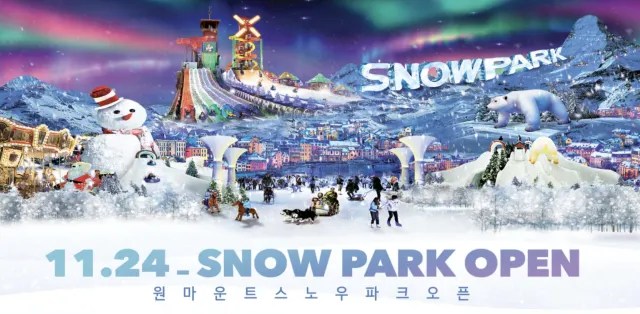 실내에서 따뜻하게 겨울왕국을 즐기고 싶다면 원마운트 스노우파크를 찾아보세요. 핀란드 산타마을을 테마로 꾸며진 실내 썰매장과 크리스마스 분위기를 물씬 풍기는 포토존, 회전목마, 고속 썰매까지 다채로운 즐길 거리로 가득해요. 실내외를 넘나드는 재미로 추운 겨울에도 마음까지 따뜻해지는 하루를 만끽해보세요.