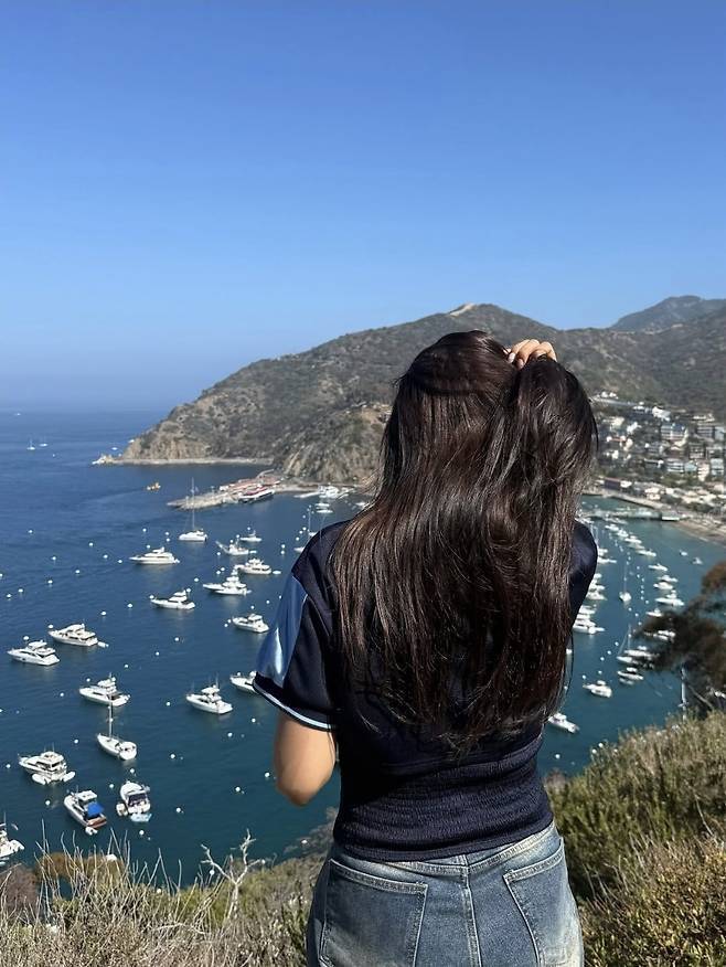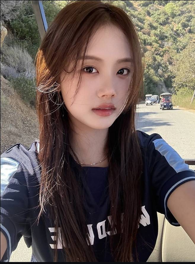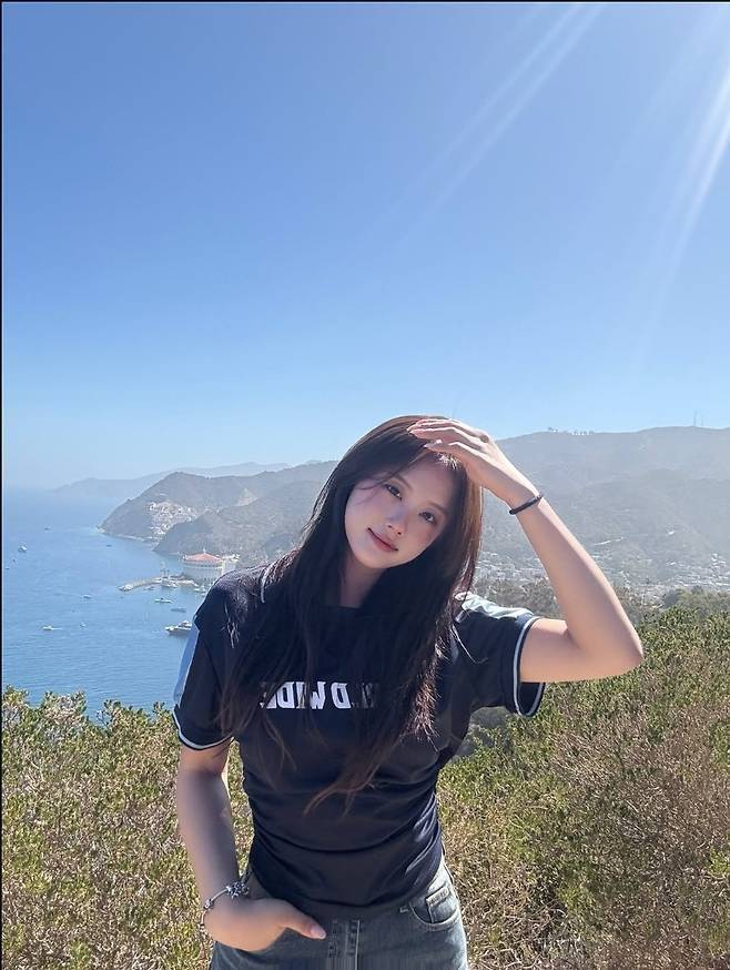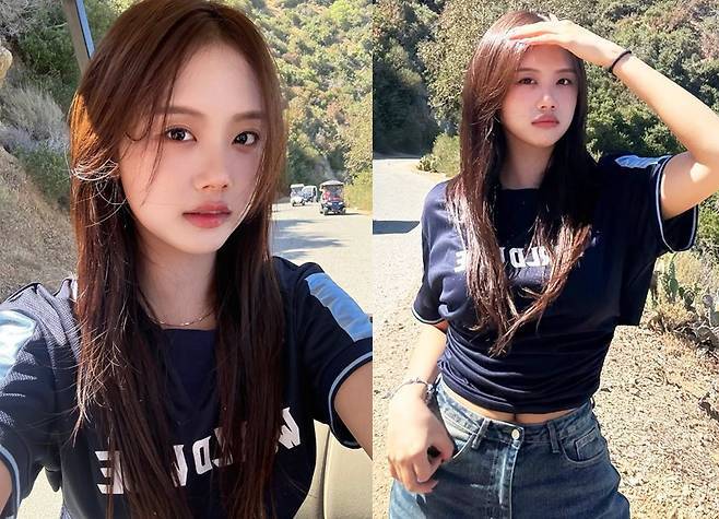 특히 티셔츠는 자연스럽게 허리를 살짝 묶어 연출해 늘씬한 허리 라인을 강조했고, 군더더기 없는 생머리와 투명한 메이크업이 더해져 싱그러움을 배가시켰습니다.