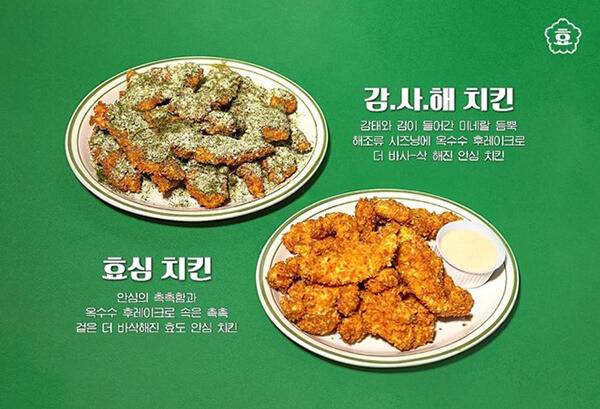 미슐랭 셰프 메뉴를 갖춘 효도치킨은 새로운 치킨 메뉴로 ‘효심치킨’과 ‘감사해치킨’을 출시했다. 효심치킨은 안심의 촉촉함과 옥수수 후레이크를 갖춘 메뉴로, 속은 촉촉하고 겉은 더 바삭한 식감을 선사한다. 전용 디핑소스인 유자소스가 함께 제공된다. 감사해치킨은 감태와 김이 들어간 해조류 시즈닝에 옥수수 후레이크로 더 바삭하게 즐길 수 있는 안심 치킨이다. 효심치킨은 22,000원, 감사해치킨은 23,000원이다.