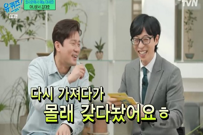 다시 가져다가 몰래 갖다놨다"고 말해 유재석을 빵 터지게 했는데요.