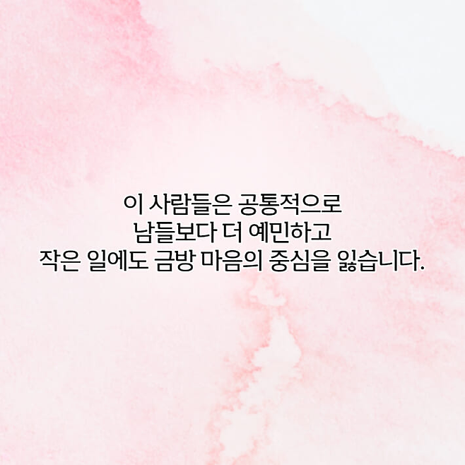 다른 사람들보다 더 예민해 작은 일에도 금방 마음의 중심을 잃고 불안, 짜증, 쓸쓸함 같은 감정에 휘둘리는 사람.