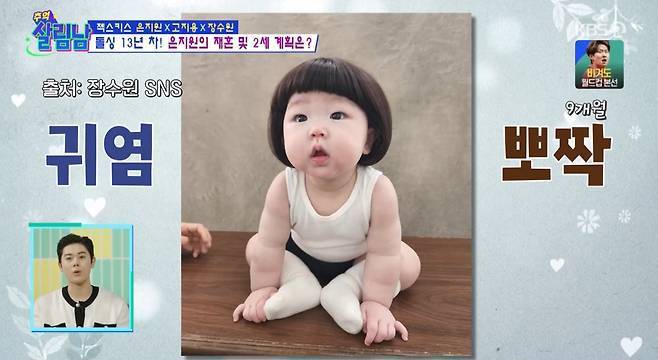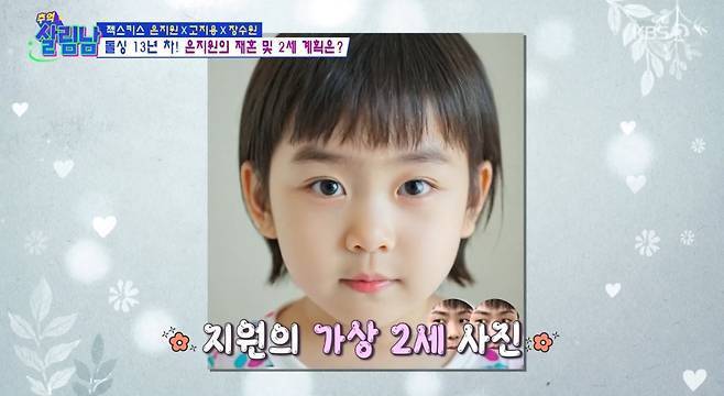 이어 은지원은 장수원의 딸 사진을 보고 “엄청 컸어!”라며 놀랐다. 고지용은 아들이 현재 초등학교 5학년이라며 영재 바이올린 학원에서 공부하고 있다고 근황을 전했다. 장수원은 은지원의 가상 2세 사진에 대해 말하며 결혼에 대해 언급했다.