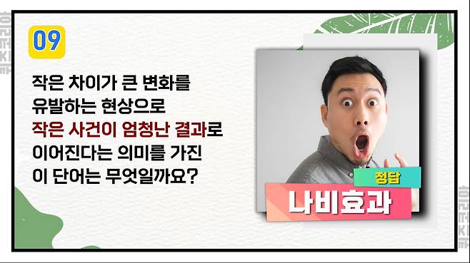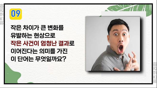 작은 차이가 큰 변화를 유발하는 현상으로 작은 차이가 엄청난 결과로 이어진다는 의미를 가진 이것은 무엇일까요?