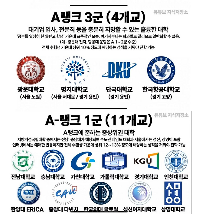 대학서열은 학문적 가치보다는 사회 구조 속에서 형성된 인식에 가깝습니다. 산업화 시기, 소수 명문대 출신 인재들이 정부·대기업·언론 핵심 자리를 차지하면서 자연스럽게 출신 대학이 개인의 능력을 대변하는 것처럼 여겨지기 시작했습니다.이 과정에서 상위권 대학, 중위권 대학, 하위권 대학이라는 인식이 굳어졌고, 이것이 지금까지 이어진 것이 대학서열의 뿌리입니다.