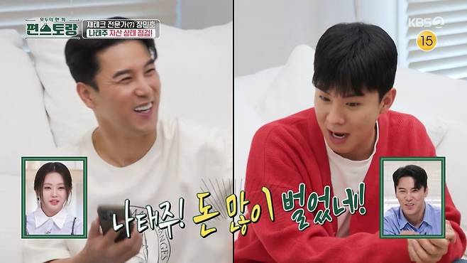 장민호가 1년 만에 나태주의 통장을 확인하고는 "돈 많이 벌었네!"라며 깜짝 놀랄 정도였다. 나태주는 "과거에 돈 관리를 너무 못해서 형님한테 많이 혼났는데, 지금은 그래도 열심히 하고 있다"며 장민호를 '재테크 은인'이라고 표현했다.