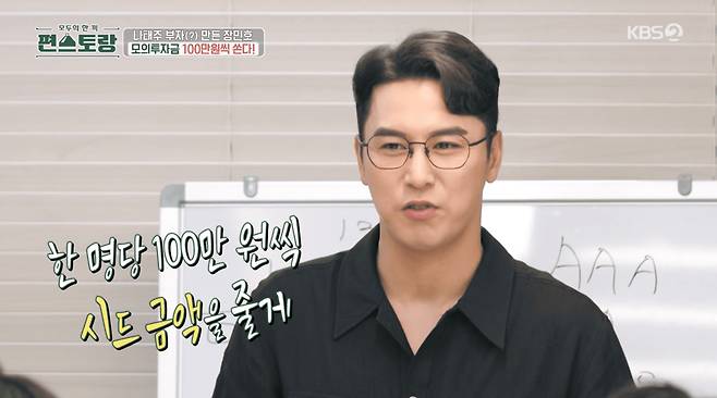 장민호의 남다른 면모는 자신의 스태프들을 대상으로 한 '재테크 스터디'에서도 드러났다. 매니저와 스타일리스트 4명의 통장 잔액을 확인한 장민호는 "심각하다"며 투자 교육에 나섰다.