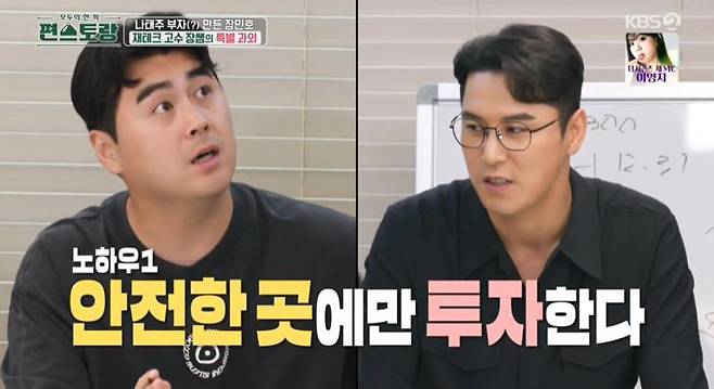 장민호는 나태주에게 "일확천금을 노리는 게 아니니까 좋은 채권이 있다. 3개월마다 이자를 주니까 이자로 또 새로운 채권에 투자하는 게 좋을 것 같다"며 구체적인 투자 조언을 아끼지 않았다.
