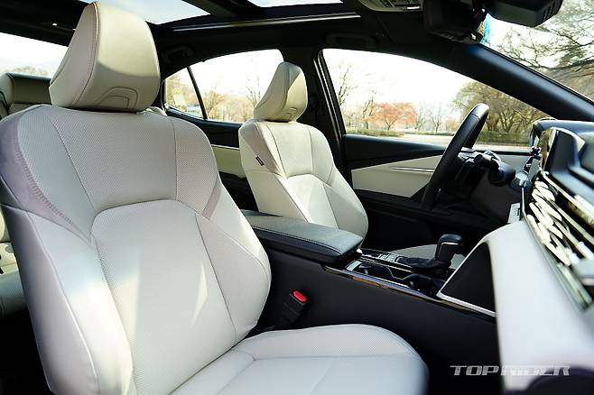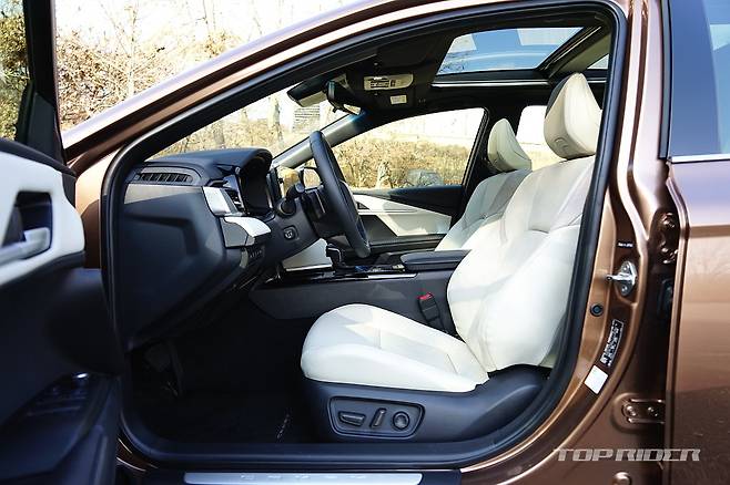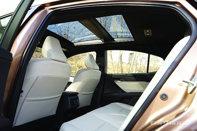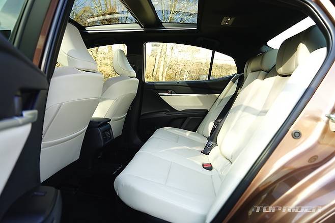 실내공간은 기존과 큰 차이가 없지만 시트백의 볼륨을 줄여 체감 공간이 소폭 늘어났다. 다만 1열 시트포지션이 다소 높아진 점은 아쉽다. 반면 2열 거주성은 상당히 만족스럽다. 작은 각이지만 전동 리클라이닝을 제공해 편안함이 남다르다. ES300h에도 없는 편의사양이다.