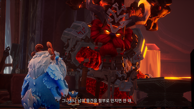 다만 약간의 아쉬움은 있습니다. LOL 세계관을 누누의 이야기에 어렵지 않게 녹여낸 점은 좋았으나, LOL팬이라면 어딘가 약간 싱거운 느낌이 있습니다. 좀 더 LOL 세계관과 챔피언들의 이야기가 스토리에 더 많은 부분을 차지했으면 하는 아쉬움이죠. 주인공 누누와 윌럼프에게 너무 집중되다 보니 방대한 프렐요드 세계관이 너무 부분적으로만 보여 졌고, 프렐요드의 챔피언들 역시 단순 조연에 그치는 느낌이었습니다. 물론 LOL을 모르는 유저도 생각해야 했겠지만 약간은 게임의 볼륨을 더 키워 프렐요드와 LOL 챔피언들에 대한 이야기가 더 많이 보여졌으면 하는 아쉬움이 있습니다.