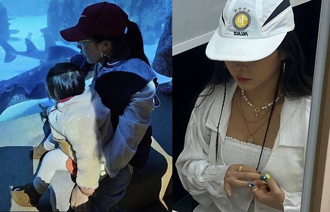 허니제이는 편안한 데님 베스트와 스웻팬츠, 볼캡을 매치한 꾸안꾸 스타일로 ‘힙한 엄마’다운 모습을 선보였습니다.