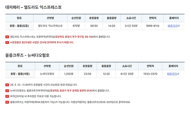 울릉도 크루즈 시간