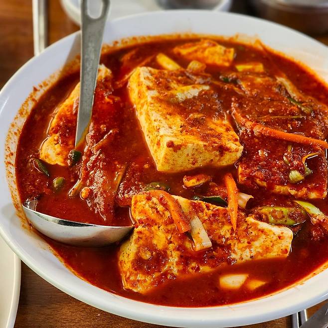 양념이 두부에 깊게 배어들어 매콤하면서도 고소한 맛이 일품인데, 만약 매운 맛이 강하게 느껴진다면 시원한 물김치와 따뜻한 육수를 함께 곁들여 먹는 것도 좋습니다.