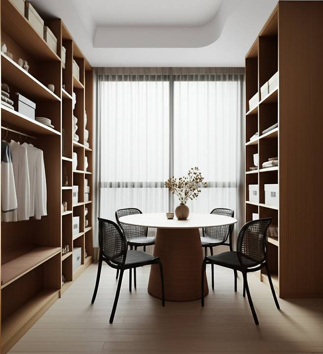• 가구 사이즈 줄이기: 덩치가 큰 가구보다는 슬림하고 심플한 디자인의 가구를 선택하여 공간이 넓어 보이는 효과를 줍니다. 예를 들어, 두꺼운 원목 식탁보다는 유리 상판 식탁을 선택하거나, 팔걸이가 없는 의자를 사용하는 것이 좋습니다.