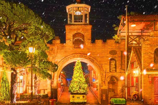 눈 내린 듯한 장식이 돋보이며, 유럽의 동화 같은 풍경이 인상적으로 연출되어 방문객에게 따뜻한 크리스마스 추억을 선사합니다.
