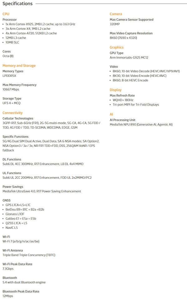 미디어텍 Imagiq 1090을 탑재하여 전체 줌 범위에서 HDR 비디오 녹화를 제공하며, 미디어텍의 Smooth Zoom 기술로 움직이는 피사체를 쉽게 포착할 수 있다. 또한 사용자가 사진과 비디오를 촬영하는 동안 전력 소비를 최소화하도록 설계되어 이전 칩셋에 비해 4K60 비디오 캡처에서 최대 14% 더 낮은 전력 소비를 제공한다.