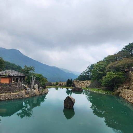 에 젖은 날에는 더욱 고즈넉한 돌계단과 함께 마치 다른 세상에 온 듯한 기분을 선사하며, 호수를 배경으로 한 인생샷 촬영에도 완벽한 조건을 갖추고 있습니다.