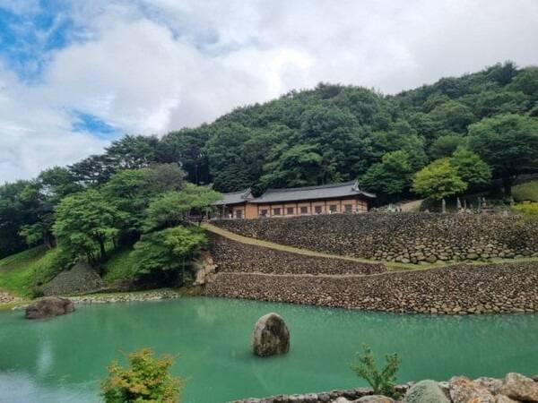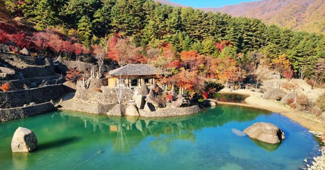 에메랄드빛 호수와 한반도 상징 연못