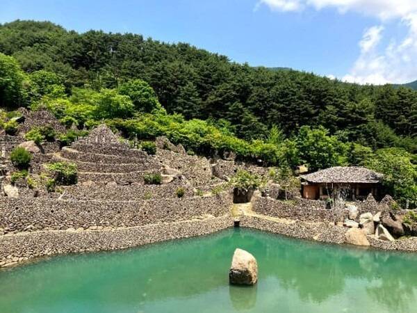 해발 850m 지리산 자락에 펼쳐진 1,500여 개의 돌탑과 에메랄드빛 호수가 연출하는 신비로운 절경.