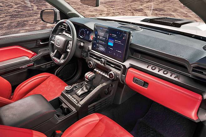 외관을 살펴보면 각진 라인과 대형 그릴, 역동적으로 보이는 헤드램프 디자인이 타코마의 강인한 분위기를 만들어 낸다. 실내는 최신 인포테인먼트 시스템과 디지털 계기판, 고급 소재를 통해 완성도를 높이고 고급스러움도 한층 강화됐다. 오프로드와 레저 활용을 중심으로 하는 소비자들을 위한 편의 사양들도 대거 탑재됐다.
