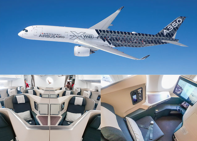 A350은 에어버스가 항공사들과 긴밀한 협의를 통해 개발한 최첨단 항공기인데요. 동급 중대형 항공기보다 객실 공간이 넓고, 연료 효율성이 뛰어나다는 장점을 갖고 있습니다.
