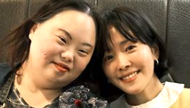 한지민과 정은혜 작가는 tvN 드라마 ‘우리들의 블루스’에서 쌍둥이 자매 역을 맡아 연기했다. 정은혜 작가는 극 중 설정과 같이 실제로 다운증후군을 앓고 있었다.