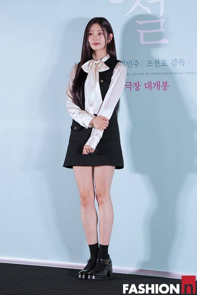 간담회 자리에는 조선호 감독과 배우 홍경, 노윤서 김민주가 참석해 개봉을 앞둔 소감을 전했다. 이날 김민주는 리본 포인트의 화이트 블라우스와 블랙 민니 원피스를 매치한 러블리한 블랙앤화이트룩으로 눈길을 사로잡았다.