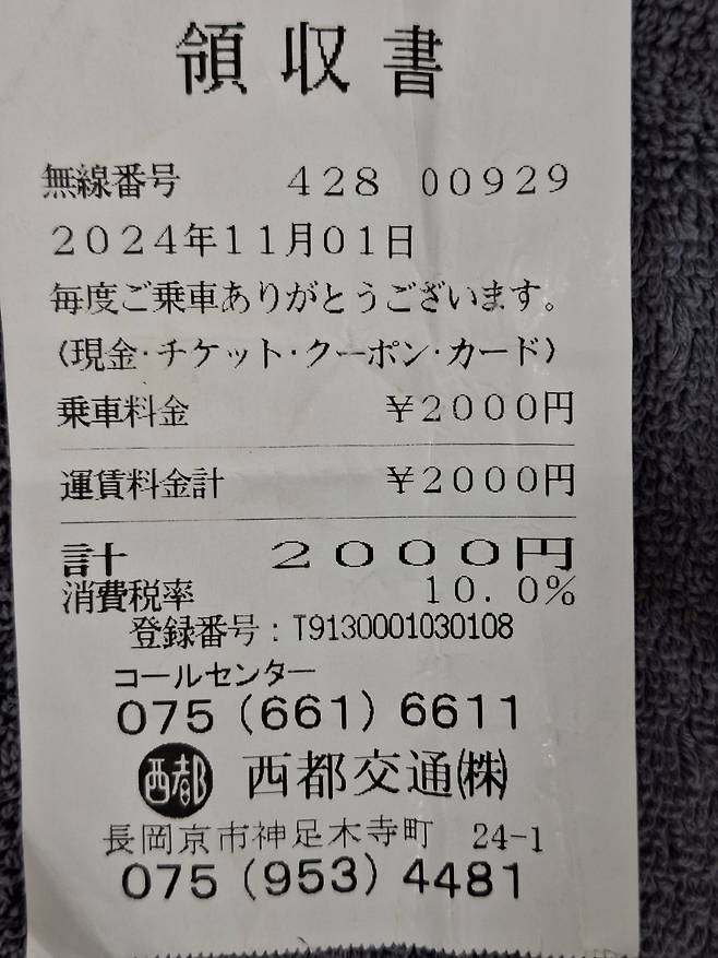 이영수증은 택시 고속도로비? 멀까요? 일본