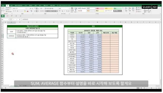 SUM이라는 함수는 영어 단어로 합계를 뜻합니다. 내가 선택한 셀에 대해서 합계가 궁금할 때 써주셔야 하는 함수입니다.