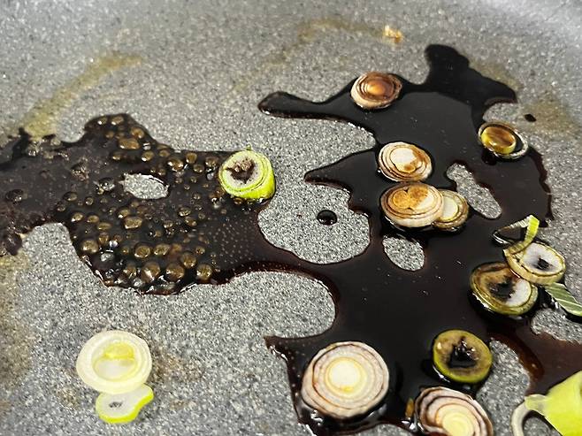 소스 붓고 참기름 1스푼 넣어 고소한 풍미를 더합니다.