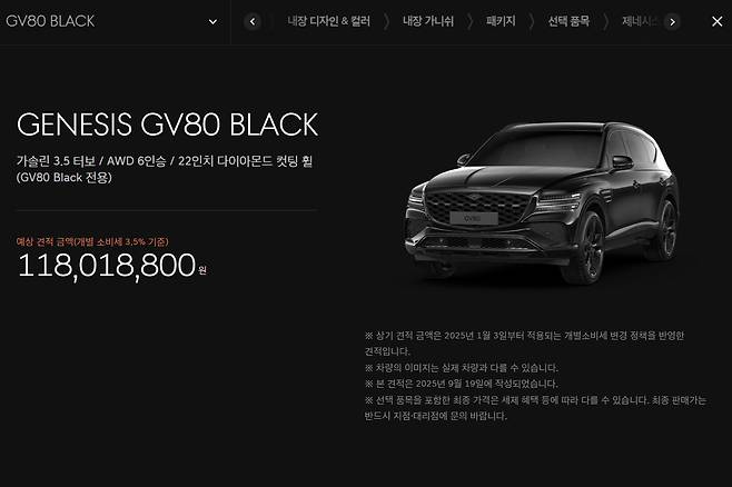GV80 가운데 가장 비싼 트림인 블랙을 기준으로 살펴봤다. GV80 블랙은 내외장 색상이 단일 구성이며, 각종 편의/안전 사양도 대부분 기본 적용돼 있다. 그래서 시작 가격만 9,520만 원으로 취등록세 등 부대 비용을 포함하면 이미 1억 원에 육박한다. 여기서 얼마나 더 비싸질 수 있는지 확인해 보자.